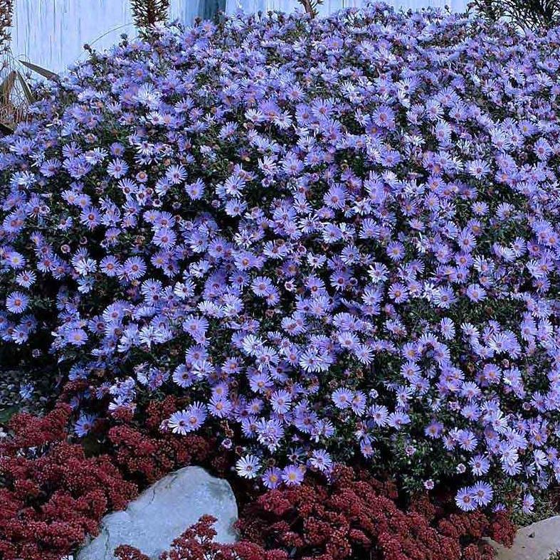 Rich and authentic nice blue flowers with yellow centers inside of the Aster Woods Blue that comes with a splendid show in a sunny garden. Excellent green textured foliage all season. Low lush carpets of fall colors. Long bloomers and attracts butterflies.
