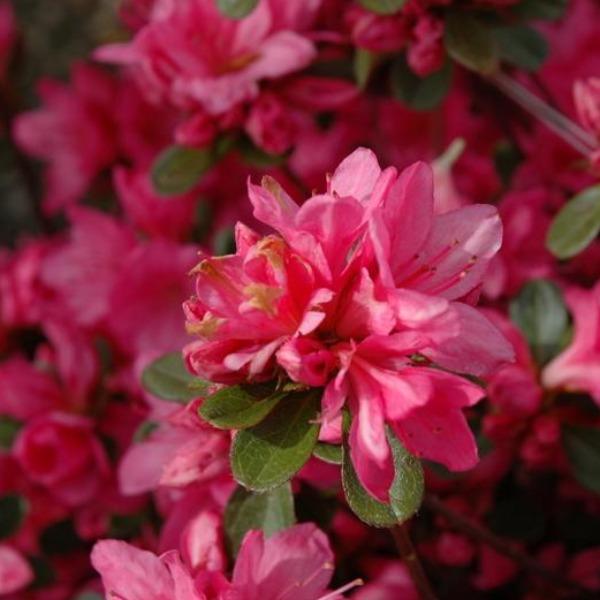 Azalea Tradition Shrubs are known to be very heavy bloomers with medium gorgeous pink flowers that make a splendid spring feeling show. Flowers are backed by very small evergreen foliage keeping a low spreading form.